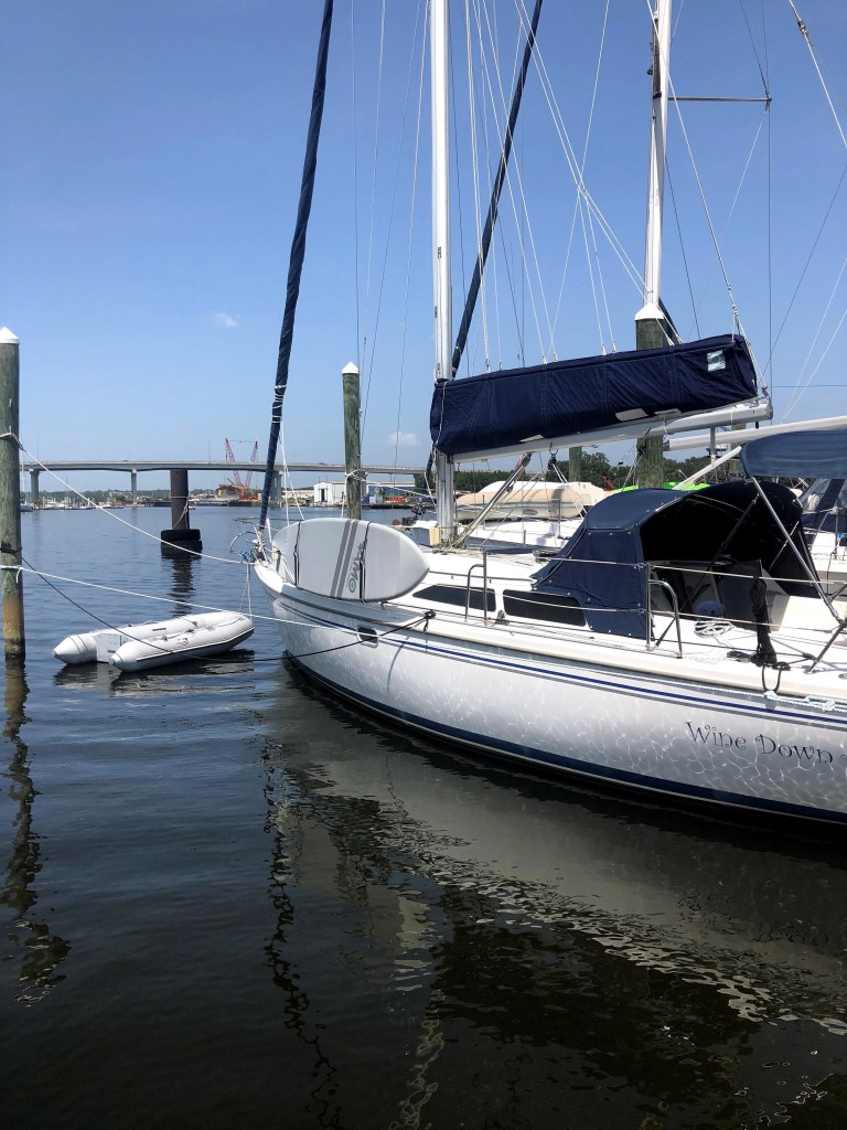 S/V (Sailing Vessel) Wine Down is a 2003 Catalina 36 sailboat. She has two cabins, galley, head and can accommodate up to 6 guests on charter. Her smooth sea motion and generous cockpit make sailing Pensacola Bay superbly comfortable and relaxing. Captain Steve invites all to assist in the sailing of her while underway or relax in her shaded cockpit area and enjoy the sites! Sun bathing on the bow deck is a favorite as well and the best place to catch site of dolphins swimming alongside!